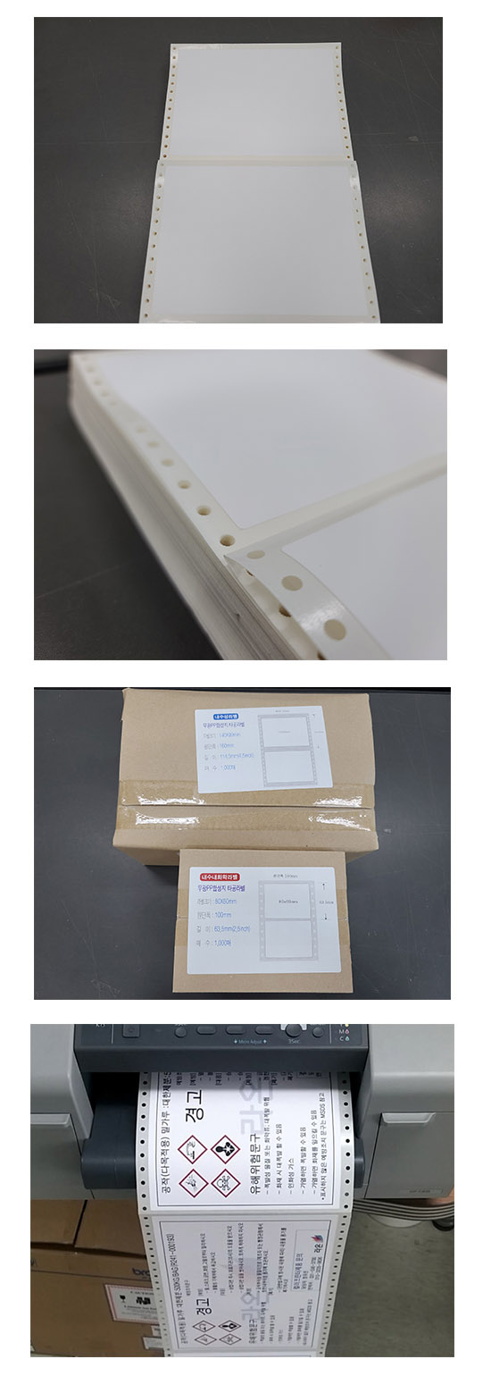 | 60mm x 80mm | 1,000매 | 찢어지지 않으며, 방수가능 |